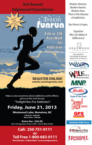 Last year the Edgewood Foundation hosted its 2st Annual Twilight Run for Addiction at Westwood Lake. More than 250 men, women and children laced up their sneakers and pinned on their race bibs to run and/or walk in an effort to raise awareness around addiction.